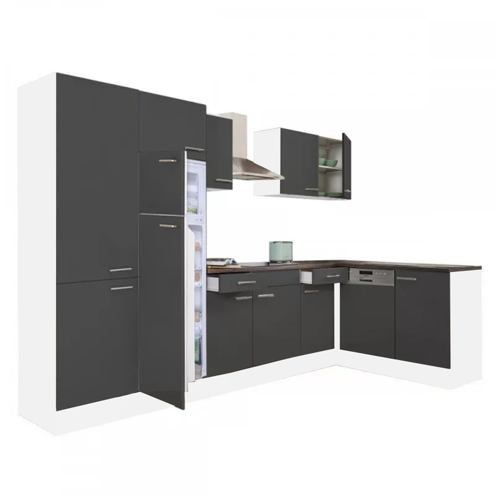 Yorki 340 sarok konyhablokk fehér korpusz, selyemfényű antracit fronttal. A tökéletes konyha megteremtője!